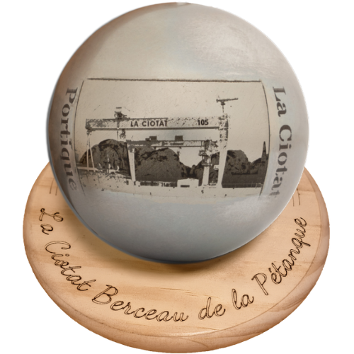 Découvrez le célèbre Portique de La Ciotat, symbole des chantiers navals et de l’histoire maritime de la ville, gravé avec une précision remarquable sur cette boule décorative. Une pièce forte, authentique, parfaite pour tous ceux qui aiment La Ciotat et son patrimoine industriel. Comme toujours, la boule est vendue avec son support rond en bois gravé, inclus dans le prix.