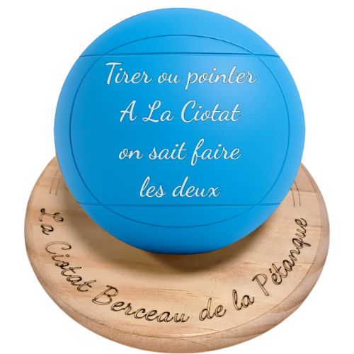 Grâce à une gravure laser fine et durable, chaque mot ressort avec élégance sur la peinture lisse, disponible en plusieurs coloris (rose, jaune, bleu, blanc). Cette boule décorative s’intègre parfaitement dans un intérieur moderne, provençal ou même dans un espace dédié à la pétanque. Elle constitue également un cadeau idéal pour un Ciotaden, un passionné du jeu ou quelqu’un attaché à l’artisanat local.